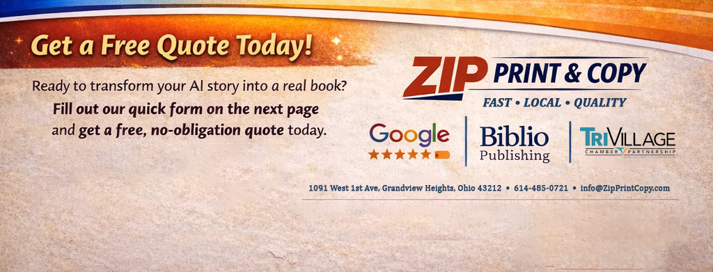 If you used ChatGPT, Midjourney, Canva, or any AI tools to create your book, we’ll help you turn it into a professional print product: perfect bound paperbacks and saddle-stitch booklets with crisp print and clean finishing.